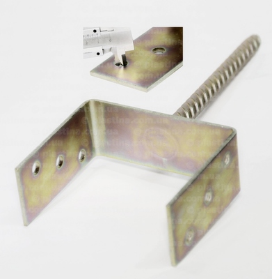 Опора U під заливку для деревянного стовпа оцинкована, 70x60x125x5,0мм. Анкерна опора встановлюється перед або під час бетонування поверхні спирання стовпа.