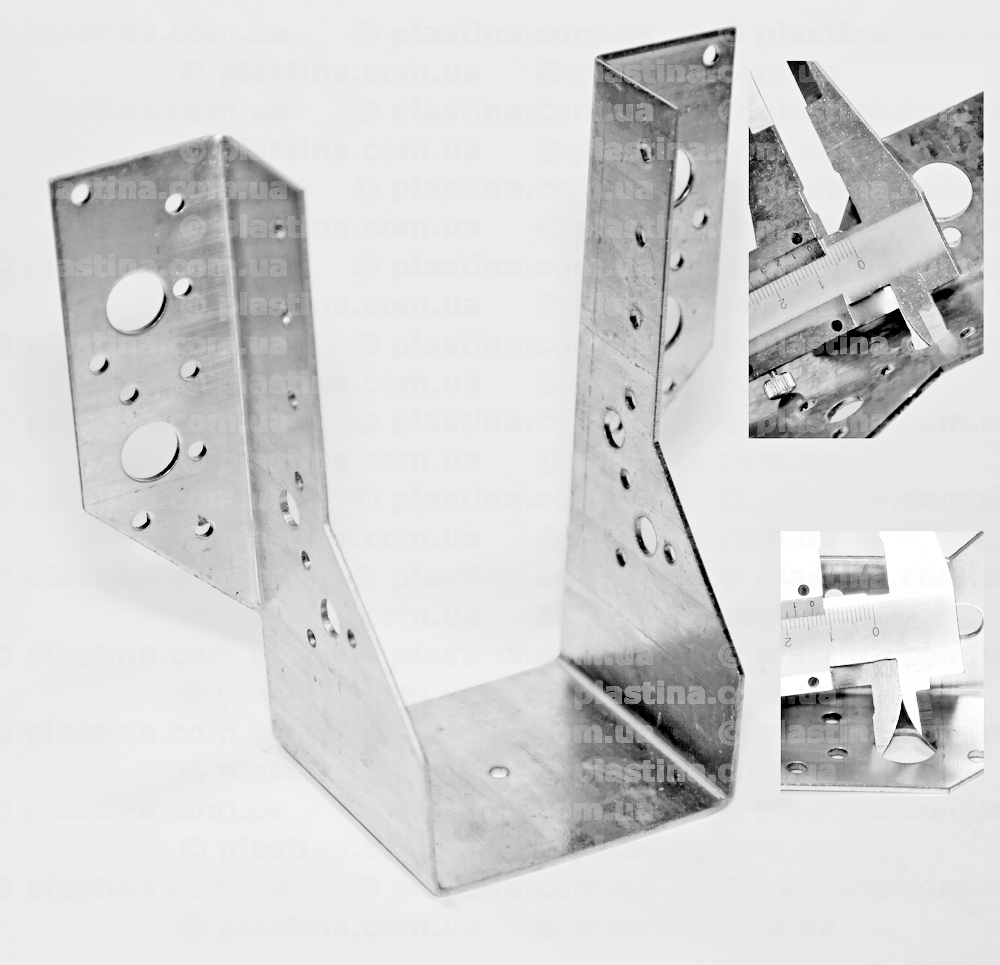 Кронштейн опора балки зовнішній, 75x152x75x2,0мм.Опора балки оцинкована, із зовнішніми вушками, для кріплення другорядної дерев'яної балки до несучої, або до стіни, за допомогою кільцевих цвяхів, оцинкованих шурупів або анкерів.