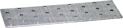 Монтажна перфорована пластина оцинкована, отвори 5мм, 60x180x1,8мм. З'єднання дерев'яної конструкції (крокв, ферм, прогонів) перфорованими монтажними пластинами забезпечує міцність та надійність вузлів на багато років. Оцинкована монтажна пластина кріпиться оцинкованими анкерними цвяхами, або оцинкованими шурупами. Перфоровані монтажні пластини зручні при збиранні дерев'яного каркасу безпосередньо на об'єкті.