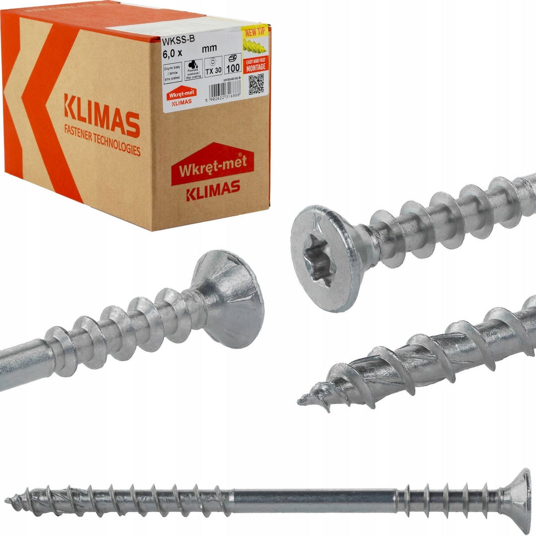 Шуруп для дерева посилений самосвердлюючий, головка потай ТХ 30, 6,0х60мм (пачка 100шт)Шуруп посилений з вістрям зі свердлом оцинкований для твердих порід деревини, 6,0х60мм, монтаж без попереднього засвердлювання, зенківка, ТХ 30 (пачка 100шт)